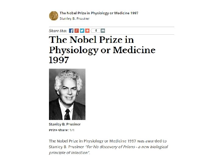 Stanley Prusiner first coined the term prion in 1982 Prion: proteinaceous infectious particle