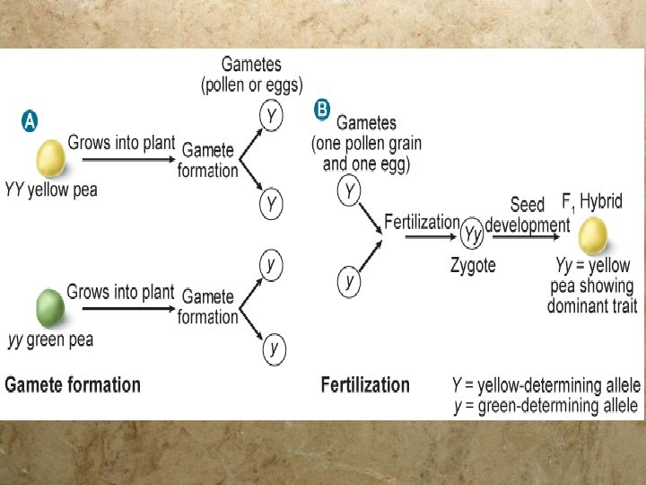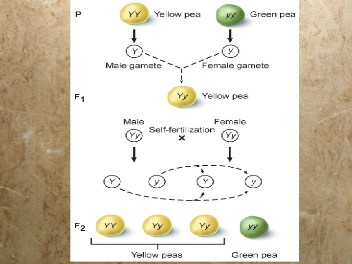 Seed Color § P generation cross: (“true - breeding”) § Yellow peas x Green peas § F 1 generation: § All yellow § F 2 generation: § 6022 yellow : 2001 green § 3 yellow : 1 green
