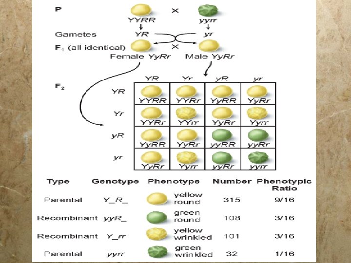 Dihybrid cross § A Special type of two - factor cross Yy. Rr x Yy. Rr (heterozygous for both traits) § You will always find the same phenotypic ratio. What is this ratio?
