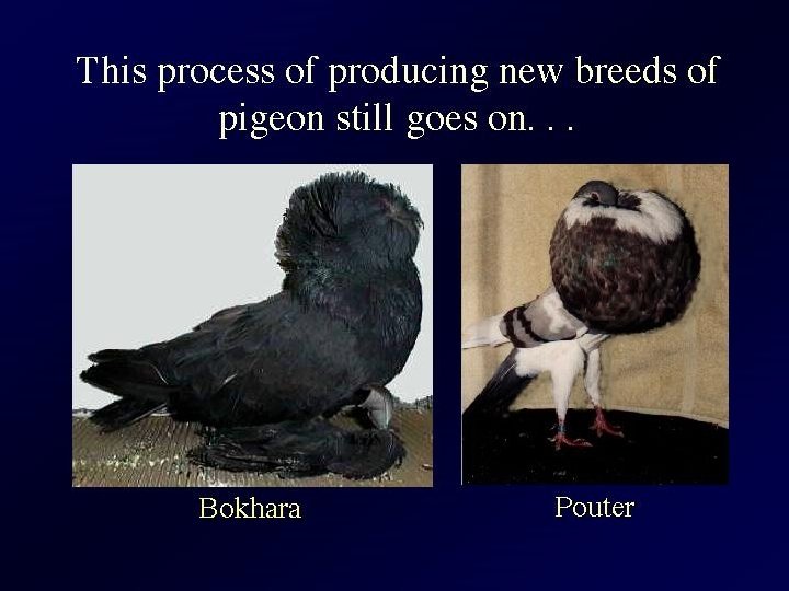 Characteristics of species have also changed over time without human influence. Instead of traits being “selected” by human choices the traits are “selected” by nature through which characteristics help species survive. Designs which help survival get passed on to the next generation. This process is known as NATURAL SELECTION and is a main idea in theory of EVOLUTION (change in species traits over time).