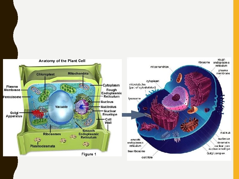 SADECE BİTKİ HÜCRESİNDE BULUNAN ORGANELLER HÜCRE DUVARI, PLASTİTLER, BÜYÜK KOFUL VAR SENTROZOM YOK… 1 - Kloroplast • İçerdiği klorofille bitkiye yeşil rengini verir. Fotosentezde görevlidir. • DNA, RNA, ribozom, ve fotosentez enzimleri içerir. Bu nedenle kloroplastlar da mitokondriler gibi kendi enzimlerini yapabilir ve çekirdekten bağımsız çoğalabilirler.