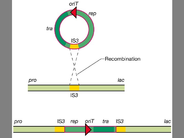 The insertion of the F plasmid occurs at a variety of sites where IS elements are located
