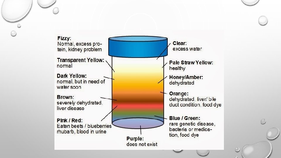 VOIDING • BLADDER STARTS TO FEEL FULL AT 150 -200 ML • STRONG VOID URGE AT 400 -500 ML • ABSENT VOID URGE MAY BE DUE TO SPINAL OR SUPRA SPINAL NERVE DAMAGE OR BLADDER WALL CHANGES • VOID NORMALLY EVERY 2 -4 HOURS • ______RELEASED AT NIGHT DECREASES URINE PRODUCTION