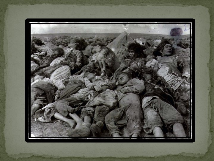 Arménska genocída • • • Raphael Lemkin – „genos“ + „cide“ = „vražda národa“ Vyhladenie skupiny osôb štátom Prvá historicky zaznamenaná genocída Abdul Hamid II. Mladoturci reformy M. Talaat Paša Turecký negionacizmus, zbavenie zodpovednosti štátu Lúpež Dnešná politika •