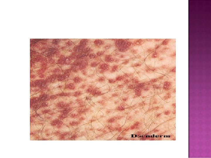 Gambaran klinis • Plak, papula kuning kecoklatan, berminyak, krusta pada daerah seborea • Fleksura berupa verukosa vegetatif, berbau. • Jarang remisi spontan, berlangsung seumur hidup