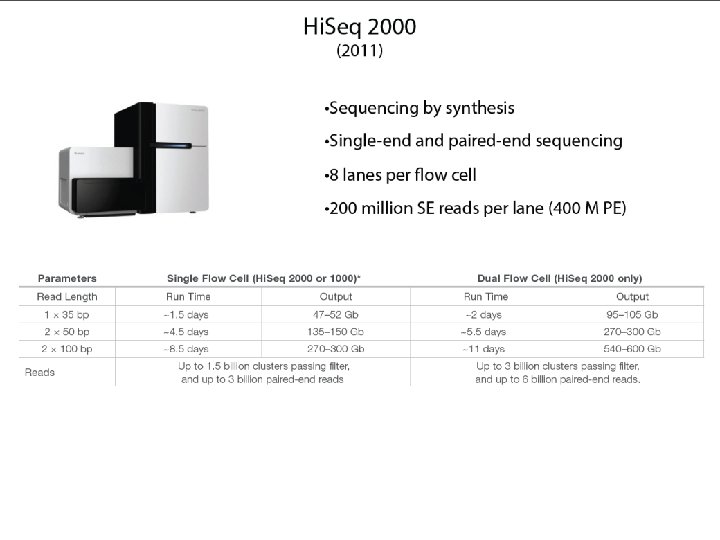 Mi. Seq • Run-times – 50 cycle – 4 hours – 300 cycle – 27 hours • Two sequencing options – 50 cycles – 300 cycles (2 x 150 bp) • One lane – 6 -7 million clusters – Up to 8 billion bases (300 cycles) Ideal for: R&D, CLIA, small genomes and projects where longer reads are important