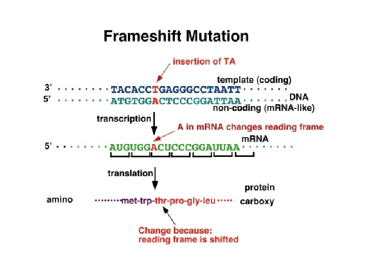 GENOTOSSICOLOGIA SPECIE DI DANNI GENETICI Mutazioni geniche Il prodotto genico può anche essere incompleto poiché la nuova sequenza di lettura include un codone senza senso (UAA, UAG o UGA). Porta ad un prodotto genico non funzionale.