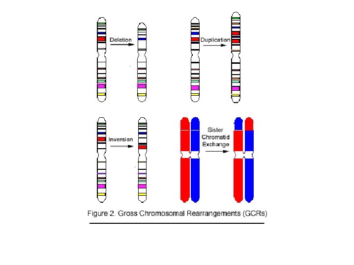 GENOTOSSICOLOGIA SPECIE DI DANNI GENETICI Aberrazioni cromosomiche Alcune aberrazioni sono stabili e possono essere trasmesse attraverso ripetute divisioni cellulari e possono persistere nella popolazione cellulare. Delezioni, duplicazioni, inversioni e traslocazioni bilanciate sono riarrangiamenti cromosomici che possono essere trasmessi.