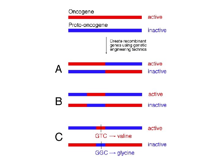 GENOTOSSICOLOGIA MUTAZIONI E SALUTE Mutazioni in cellule somatiche L’azione degli oncogeni è geneticamente dominante. I proto-oncogeni possono essere convertiti in oncogeni attivi da mutazioni puntiformi o da alterazioni cromosomiche. Tra queste, sono prevalenti le traslocazioni, oltre alle mutazioni per sostituzione di coppie di basi.