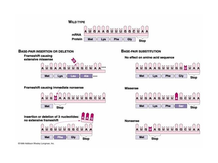 GENOTOSSICOLOGIA SPECIE DI DANNI GENETICI Mutazioni geniche In una mutazione errata vi è un cambiamento nella codifica nella quale un aminoacido ne sostituisce un altro. La mutazione può inattivare il gene, avere soltanto lievi effetti o essere virtualmente senza effetti.