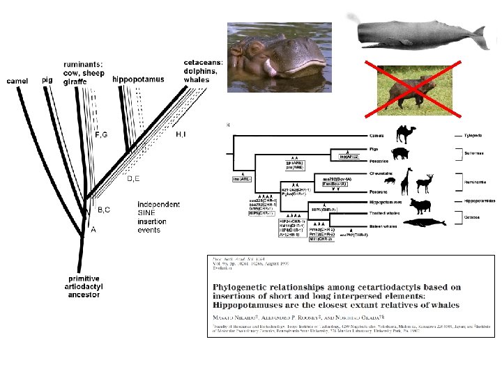 Neexistují zpětné mutace = výhoda oproti sekvenačním datům Příklad aplikace: kytovci vs. sudokopytníci (hroch je bratr velryby)