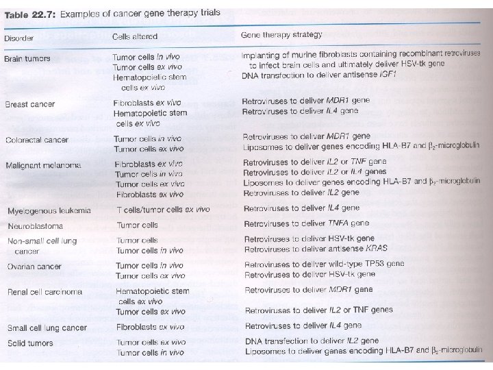 Genová terapie Ø Klasická genetická terapie (dopravit geny do vhodných cílových buněk, aby bylo dosaženo optimální exprese vnesených genů) s cílem: Ø 1. zajistit produkci látky, která chybí Ø 2. aktivovat buňky imunitního systému ve snaze pomoci odstranit nemocné buňky