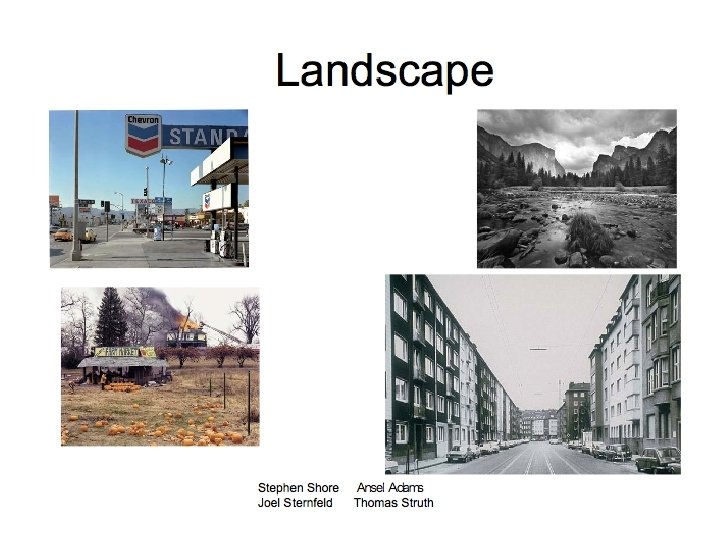 Landscape Photographers Ansel Adams Edward Weston Laurence Aberhart Peter Preyer Ans Westra Weegee Andrew Ross Eugene Atget William Eggleston Lewis Baltz Ronnie Van Hout Mark Adams Joann Verberg Candida Hofer Bruce Foster Richard Misrach Terry Evans Rhona Bitner Desiree Dorlon Wayne Wilson Wong Paul Caponigro Natalie Robertson