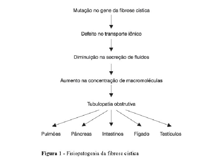 Fibrose cística • • • Doença letal mais comum na população branca AR Defeito primário - regulação transporte de cloro Diagnóstico: IRT, Na/Cl no suor, testes biomol. QC: SP (15%): pneumonia de repetição (S. aureus, P. aeruginosa) - BCE, bronquiectasia IP (85%): desnutrição, infertilidade, cirrose hepática, íleo meconial (10 -20%), dilatação ductos gl. salivares (atrofia e fibrose)