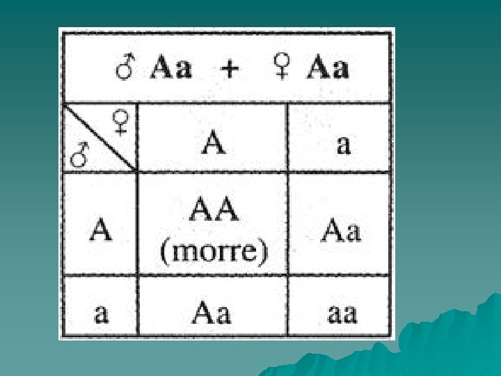 ALELOS LETAIS Os genes letais são aqueles que promovem a morte de um ser vivo durante o período de pré-natal ou pósnatal. Exemplo – Nos ratos, o gene A é letal em homozigose (AA), provocando a morte do embrião, enquanto em heterozigose (Aa) condiciona amarelo. O alelo a condiciona preto. O cruzamento de híbridos produz uma geração com 2/3 amarelos e 1/3 preto.