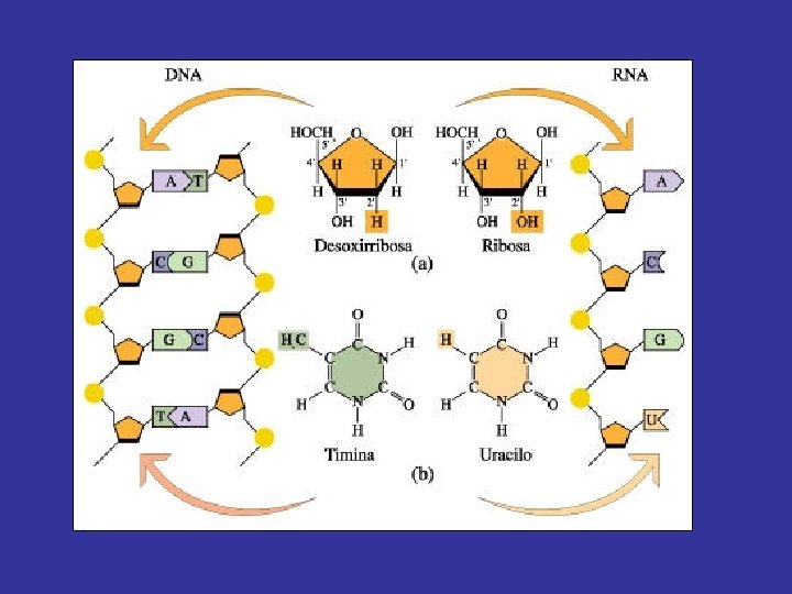 Procariotas – Bacterias (ADN) ADN Bacteriano plásmidos Virus (ADN – ARN) ARN Virus del mosaico del tabaco. Retrovirus helicoidal cabeza ADN cola Fibras de la cola