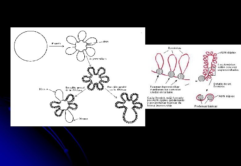 PROTEÍNAS BÁSICAS DETECTADAS EN BACTERIAS Contenido por células Semejanza con eucariontes HU Dímero subunidades y de 9. 000 d. 40. 000 dímeros Histona H 2 A H Dímero subunidades idénticas de 28. 000 d. 30. 000 dímero Histona H 2 B IHF Subunidad de 10. 500 d. Subunidad de 9. 500 d. Desconocido Desconocida H 1 Subunidad de 15. 000 d. 10. 000 copias Desconocida HLP 1 Monómero de 15. 000 d. 20. 000 copias Desconocida P Sububnidad de 3. 000 d. Desconocido Protaminas Proteína Composición