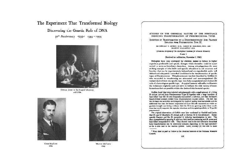 El ADN como principio transformante Avery, Mac. Leod & Mc. Carty (1944)