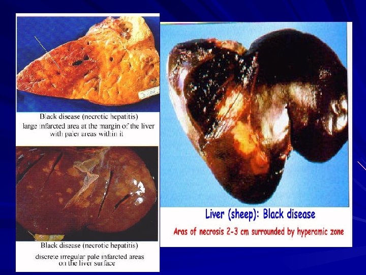 Clostridium novyi Cl. novyi is an anaerobic bacterium found in soil, manure, and plants Different types of Cl. Novyi: Type Toxin Animal susceptible Diseases Cl. novji A Alpha +++ Delta ++ Gamma + Man and animals Cl. novji B Beta +++ Alpha + Cattle & sheep Turkeys Sheep Cl. novji C No toxins Non pathogenic Beta ++ Red water disease (Infectious icterohaemoglobin urea) Cl. novji D (Cl. haemolyticum) Cattle & sheep Malignant oedema gas gangrene Black disease Infections necrotic hepatitis. Swelled head in rams