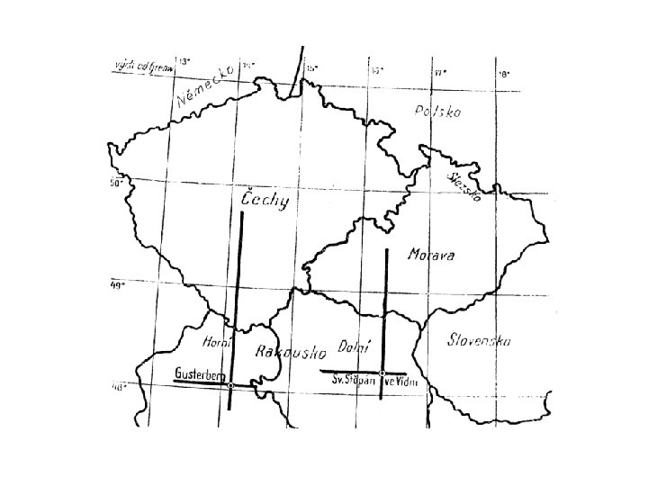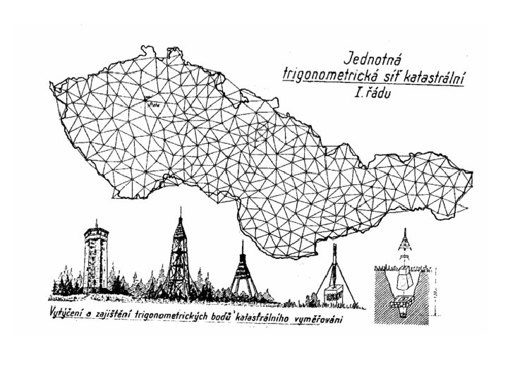 Geodetické referenční systémy ČR • Stabilní katastr Systém habsburské monarchie pro katastrální mapy (měřítko 1: 2880 a 1: 2500). Zobrazení Cassini-Soldnerovo – ekvidistantní transverzální válcové zobrazení. RU bylo rozděleno na 11 částí, aby nedocházelo k příliš velkému zkreslení. Na našem území se nachází dvě části: Gusterberská a Svatoštěpánská soustava. Počátek souřadnicových os byl vložen do trigonometrického bodu zhruba uprostřed území. Osa +X směřovala k jihu, osa +Y na západ. V tomto systému je stále vyhotoveno cca 60% dosud používaných katastrálních map.