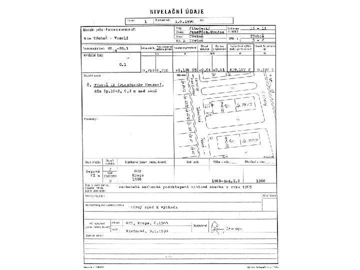 Dokumentace geodetického bodu Geodetické údaje: Ke každému GB se vyplňuje předepsaný formulář. U každého bodu si uživatel musí sám ověřit, zda se nezměnily.
