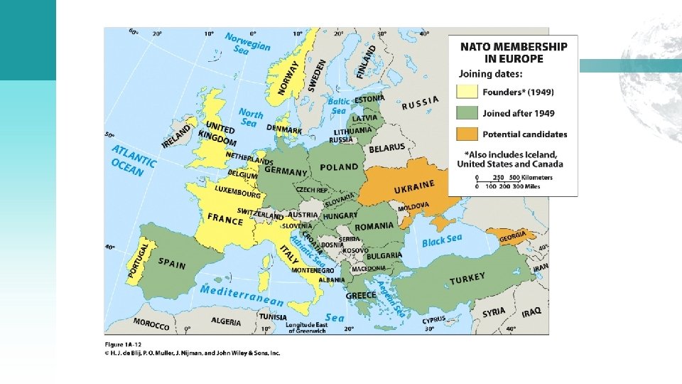 Defining Europe: Difficult Choices: EU versus NATO ■ North Atlantic Treaty Organization • Mutual defense alliance created in postwar, Cold War context. • Partially overlaps with the EU, but includes non-EU, United States, Canada, and Turkey. • The collapse of the Soviet Union changed the scope of the alliance. • Eastward expansion of members. • Today’s security needs: • Terrorism. • Rogue states. • Cyber war.