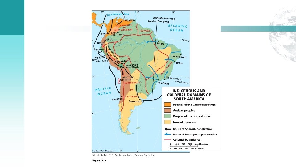 The Cultural Mosaic: The Population Map—Then and Now ■ Pre-Colombian population • Amerindian societies inhabited highlands (Andes), lowlands, riverbanks, and harsh environments. ■ Contemporary population • Amerindians eradicated by European warfare and disease. • Majority of European settlers stayed near the coasts. • Andes settlements legacy of Incas.