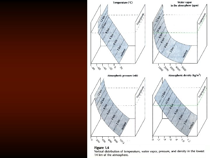 Important fields of Study • Aerology- study of the structure and chemical and physical interactions of the various components in the atmosphere. • Meteorology- deals with air mass motion, air mass characteristics such as temperature, moisture and pressure, and weather phenomena such as storms, on a short time scale. • Climatology- the same as with meteorology only over a longer time scale. Both average and extreme conditions