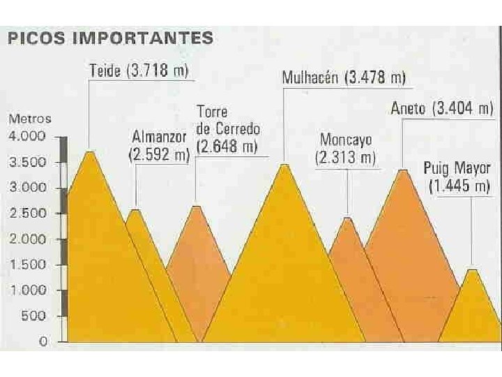 EL RELIEVE El relieve de la Península Ibérica viene marcado por la presencia de una extensa meseta central. Rodeando la Meseta se encuentran la Cordillera Cantábrica, el Sistema Ibérico y Sierra Morena. Son exteriores a la Meseta los Pirineos, las Cordilleras Béticas y el Macizo Galaico. Se encuentran en el interior de la Meseta el Sistema Central y los Montes de Toledo