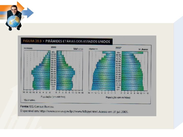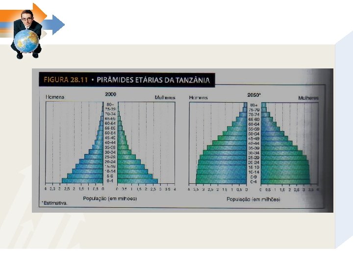 O que são pirâmides etárias? • Representação gráfica que relaciona a população por idades e por sexo
