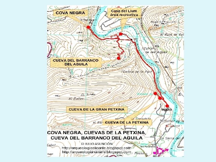 Carlos A. Marmelada carlosalbertomarmelada@yahoo. es Noviembre 2007 Los restos hallados pertenecen a un número mínimo de 7 individuos, cuatro de los cuales fallecieron con una edad inferior a los 10 años. Esta abundancia relativa de individuos infantiles en Cova Negra es similar a la que se registra en otros yacimientos musterienses de Europa y del sudoeste asiático. El estudio de las características morfológicas de los individuos hallados en Cova Negra, así como el del contexto arqueológico, sugieren claramente su asignación a Homo neanderthalensis. El análisis del citado contexto arqueológico indica que el yacimiento fue objeto de ocupaciones temporales breves, lo que sugiere un alto índice de movilidad en las poblaciones neandertales de esta zona. Ubicación geográfica y trabajos de investigación. El yacimiento de Cova Negra se encuentra en la orilla izquierda del río Albaida en el municipio de Xàtiva (Valencia, España). Actualmente la cueva se halla a 17 metros sobre el nivel del río y se caracteriza por tener una larga entrada, contando con una superficie total de 500 m 2, en la que se han llevado a cavo excavaciones a lo largo de tres periodos distintos durante el siglo XX. El primer periodo se corresponde a los trabajos realizados entre 1928 y 1933, cuya dirección corrió a cargo de G. Viñes; ya entonces se descubrió un hueso parietal perteneciente a un individuo adulto. En trabajos publicados en 1935 y 1958 Fusté lo asignó a Homo neanderthalensis.