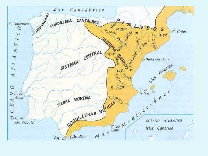 UNIDADES DE RELIEVE: SISTEMA IBERICO SISTEMA BETICO LLANURAS LITORALES RIOS LAGOS Y EMBALSES