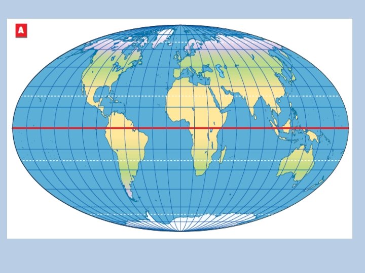 A sinistra, sulla superficie della Terra sono disegnati dei cerchi paralleli, che vanno da est a ovest. Il parallelo più grande e importante è l’Equatore, che «taglia» in due metà uguali la superficie della Terra.