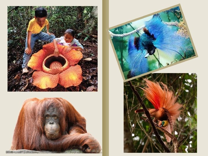 Dažďové pralesy majú dostatok tepla a vody počas celého roka (takmer každý deň tam prší) veľa druhov rastlín, ktoré tvoria niekoľko lesných poschodí, sú husté, vysoké až 70 m veľa druhov hmyzu a zvierat žijúcich na stromoch