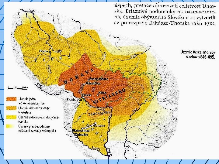 n n n Začiatky nášho štátneho útvaru – späté s príchodom Slovanov – v 5. stor. prevládali na našom území V 7. stor. – Samova ríša (avarské útoky) V 1. pol. 9 stor. – Nitrianske kniežatstvo r. 833 – Nitrianske + Moravské kniežatstvo = Veľkomoravská ríša Slovensko po zániku Veľkej Moravy (zač. 10. stor. ) takmer 1000 rokov bolo súčasťou Uhorska, netvorilo samostatný štátny ani administratívny útvar.