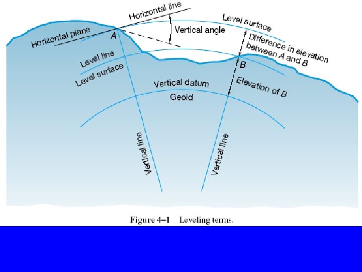 • Vertical Datum: A level surface to which elevations are referred, for example: MSL. A geoid “surface of equal gravity” that contains large water bodies • Elevation: the vertical distance from a vertical datum to a point or an object.