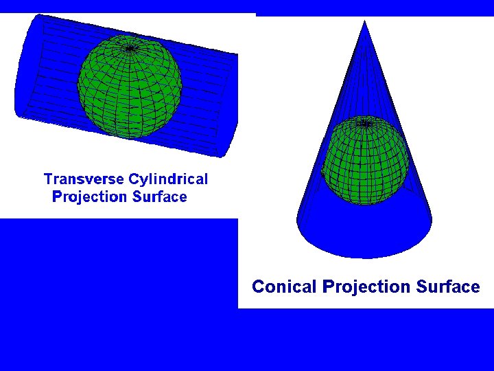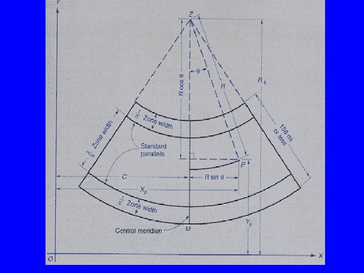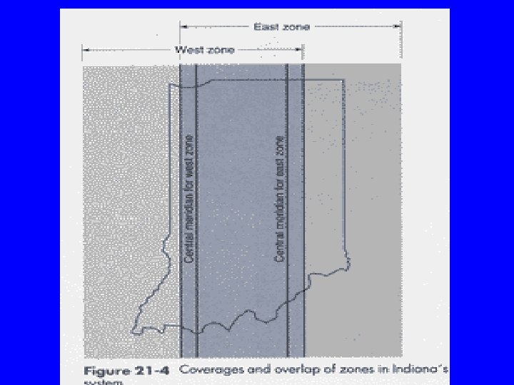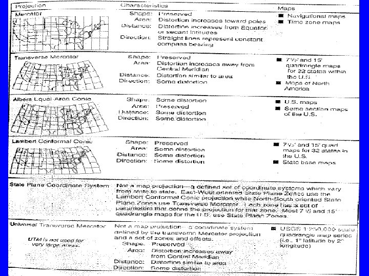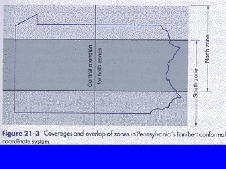 How They Selected Projections? • States extending East-west: Lambert Conical • States extending North-South: Mercator Cylindrical. • A single surface will provide a single zone. Maximum zone width is 158 miles to limit distortions to 1: 10, 000. States longer than 158 mi, use more than one zone (projection).