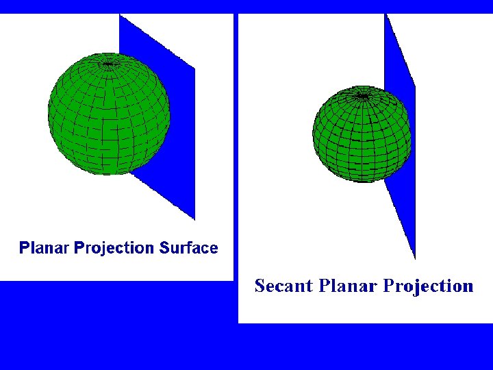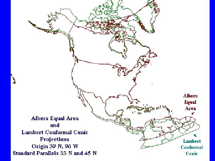 Secants, Scales, and Distortions • Scale is exact along the secants, smaller than true in between. • Distortions are larger away from the secants