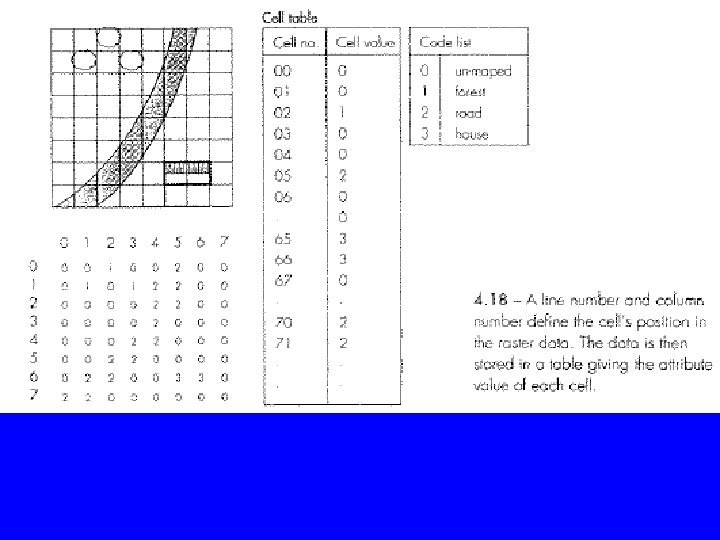 • Cell values can represent many things: a gray level, a code for feature types, or any other attribute. • Figures 4. 17 and 4. 18
