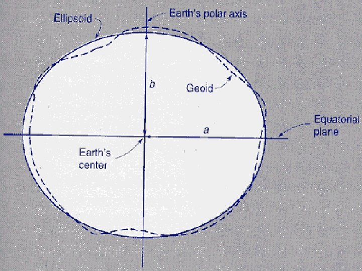 Shape of the Earth • Geoid and Ellipsoid, what for? • A geoid is a surface of equal gravity from which elevations are measured, cannot be mathematically defined easily. • An ellipsoid is an approximation of a geoid to produce a mathematically defend surface, based on which horizontal coordinates can be defined.