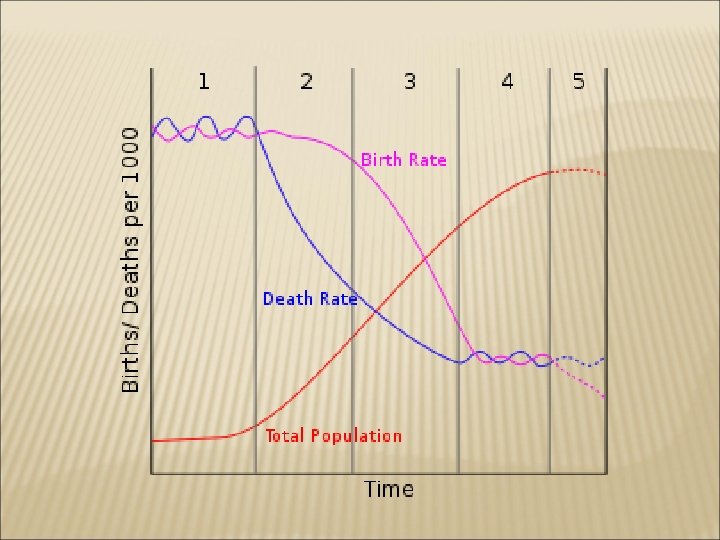 Sociological Explanation of Population Growth Demographic transition is the change from a low population growth rate based on high or medieval birth and high death rates to a low population growth rate based on low (modern) birth and death rates. During this transition, death rate starts to drop faster than birth rate which leads to an explosive population increase. Birth rate is the number of live births per 1000 population. In l 875 birth rate was in the high 30 s; in l 930 the birth rate declined to between 15 and 20 (1. 5– 2. 0%).