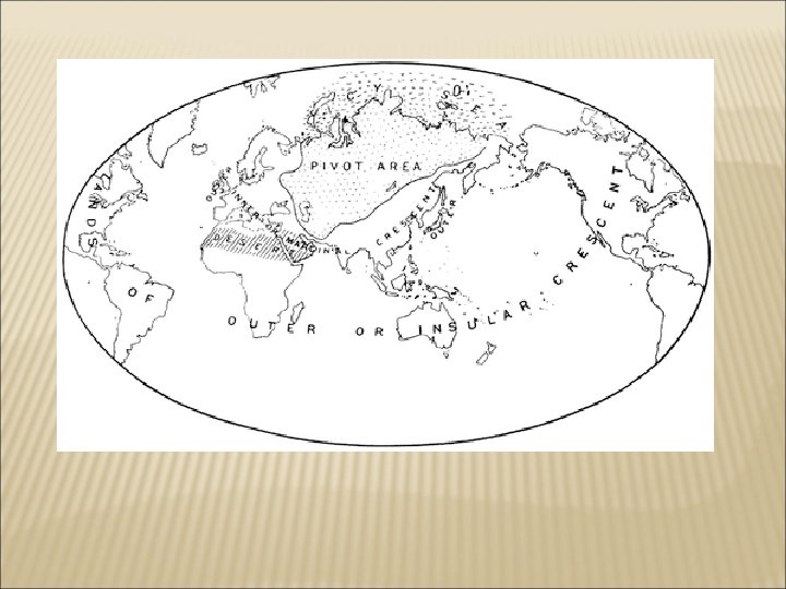 According to Mackinder, the earth's land surface was divisible into: • The World-Island, comprising the interlinked continents of Europe, Asia, and Africa. This was the largest, most populous, and richest of all possible land combinations. • The offshore islands, including the British Isles and the islands of Japan. • The outlying islands, including the continents of North America, South America, and Australia. • The Heartland lay at the centre of the world island, stretching from the Volga to the Yangtze and from the Himalayas to the Arctic. Mackinder's Heartland was the area ruled by the Russian Empire and then by the Soviet Union, minus the area around Vladivostok.