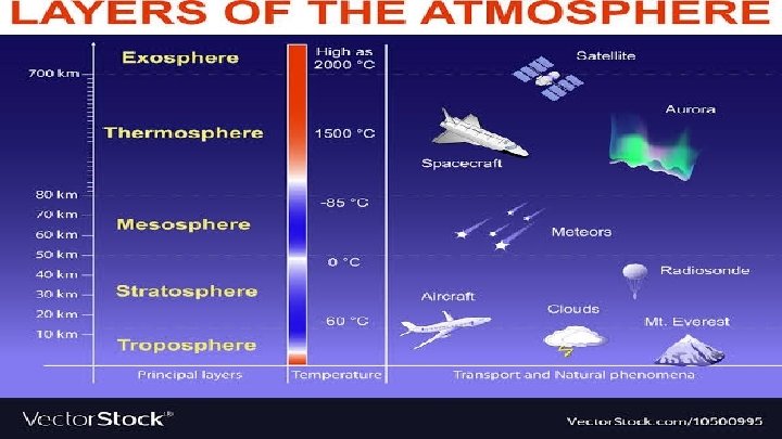 (1) TROPOSPHERE: THIS LAYER IS THE MOST IMPORTANT LAYER OF THE ATMOSPHERE. ITS AVERAGE HEIGHT 13. THE AIR WE BREATHE EXIST HERE. ALMOST ALL THE WEATHER PHENOMENA LIK RAINFALL, FOG AND STORM OCCUR IN THIS LAYER. (2) STRATOSPHERE : ABOVE THE TROPOSPHERE LIE THE STRATOSPHERE. IT EXTENDS UPTO A HEIGHT O 50 KM. THIS LAYER IS ALMOST FREE FROM CLOUDS AND ASSOCIATED WEATHER PHENOMENON, MAKING CONDITIONS MOST IDEAL FOR FLYING AEROPLANES CONTAINS A LAYER OF OZONE GAS.