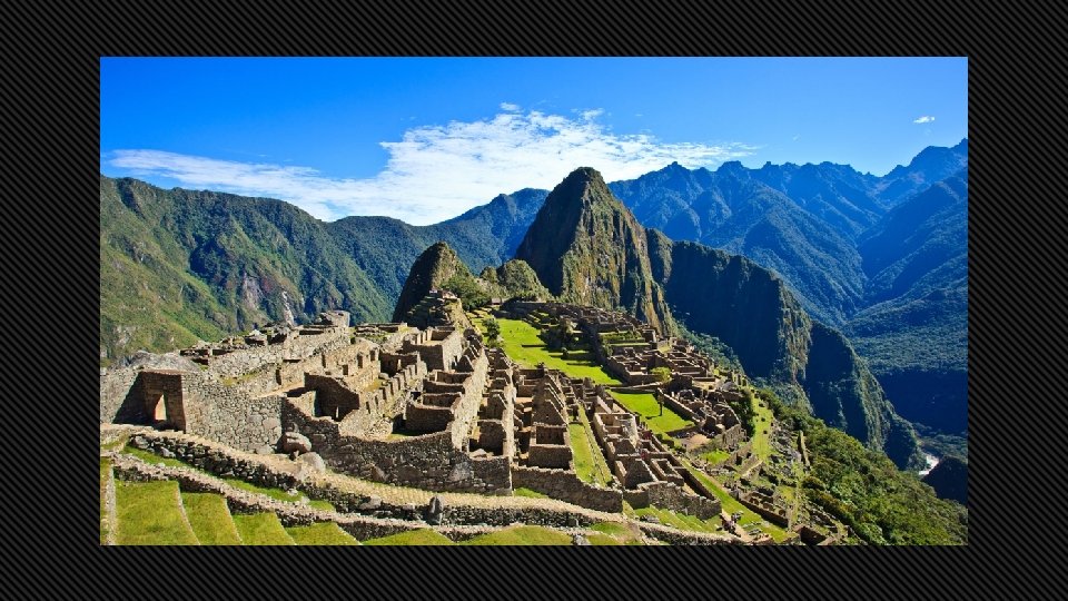 Machu Picchu is a historical Inca site located in Peru, South America. The Incas (a South American tribe) built the city on a beautiful mountain ridge, 2430 m above sea level. Human features: Machu Picchu The Incas built houses , fields and temples by cutting rock on the mountain until it was flat enough to build on. When the Spanish invaded Peru, the Incas left the Machu Picchu. Nobody knows why, but some think it was because of the diseases that Europe had back then. The city was then left… The Machu Picchu is very hard to get to because its so high in the mountains, it only has one way in and is surrounded by a stone wall.