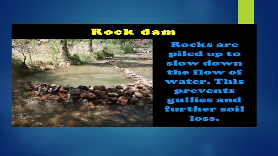 v Rockdams; Rocks are piled up to slow down the flow of water