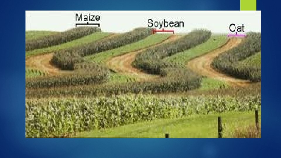 v Intercropping: Different crops are grown in alternate rows and sown at different times to protect the soil from rain wash.