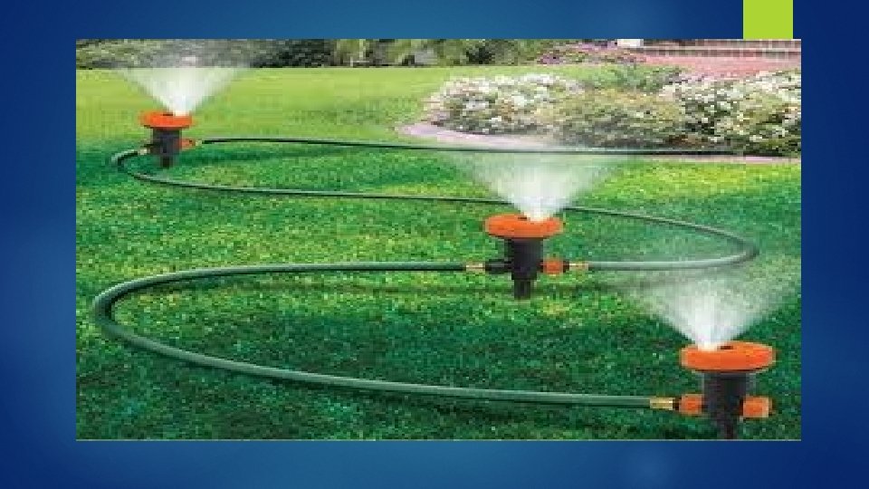 Important methods of water conservation are v Increase the forest and other vegetation cover v Rainwater harvesting v Lining canals used for irrigating field. v Sprinkler system and v Drip irrigation or trickle irrigation