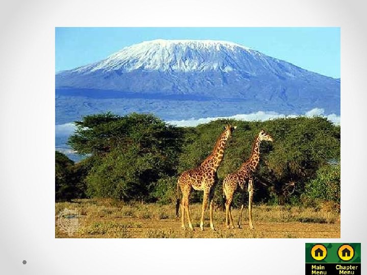 Mountains • The highest mountains are the Atlas Mountains in the northwest, near the Mediterranean Sea. They rise to 13, 600 feet (4, 160 m) above sea level. • Sub-Saharan Africa does not have large mountain ranges, but there are several tall mountains that are volcanoes. • The tallest mountain is Mt. Kilimanjaro in Tanzania at 19, 341 feet. • The second tallest mountain is Mt. Kenya at 17, 058 feet.