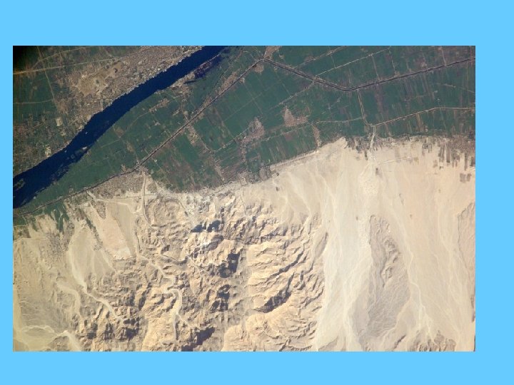 The Nile • Longest river in the world • 4145 miles • Flows to the north from the Ethiopian high lands to the Mediterranean sea. • Begins as two separate rivers-Blue and White Nile • Lower Egypt-North Egypt near the delta • Upper Egypt-South of Memphis