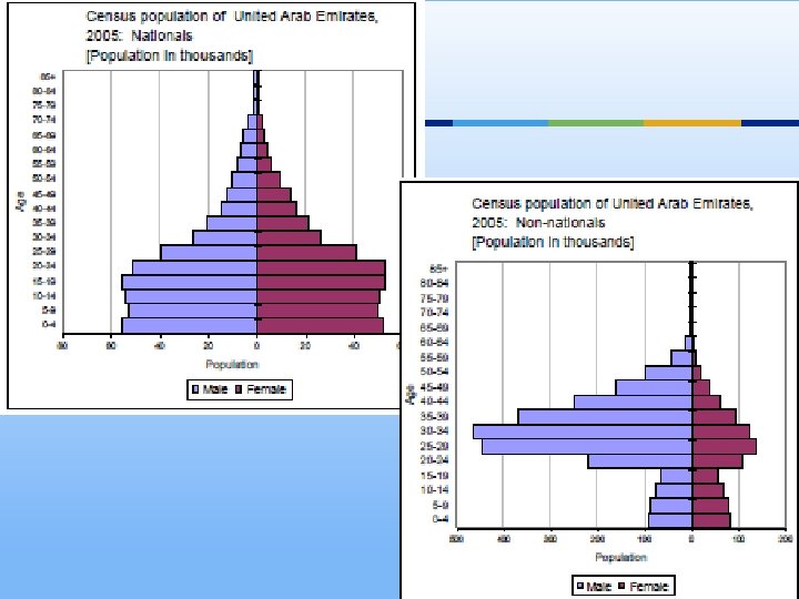 Continued…. ¥ Population 1. 2. 3. 4. Pyramids show; The population of a country or region divided into five year age groups. The percentage of the total population in each of these age groups The percentage of males and females in each age group Changes in birth and death rate for each age group